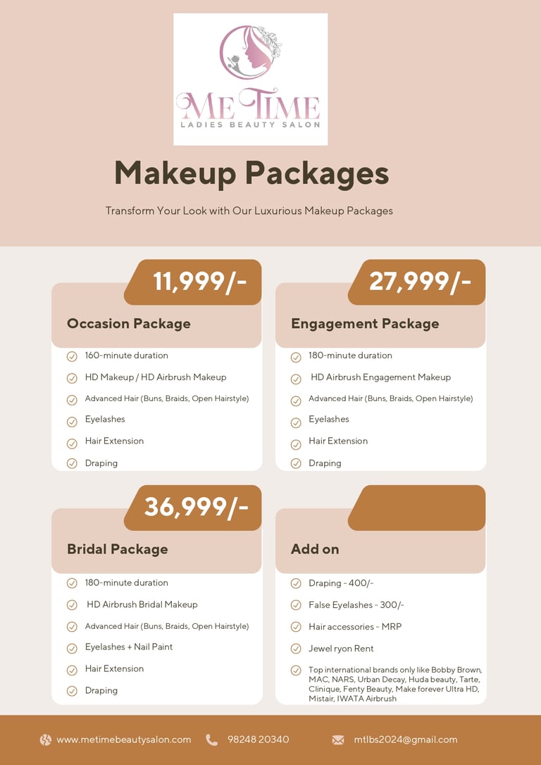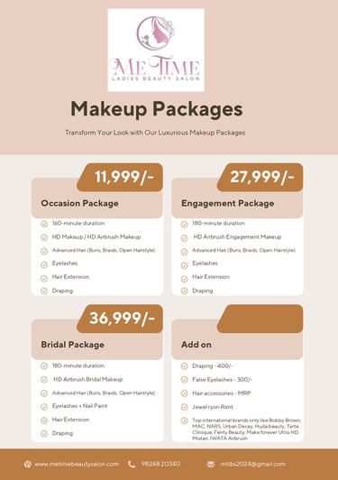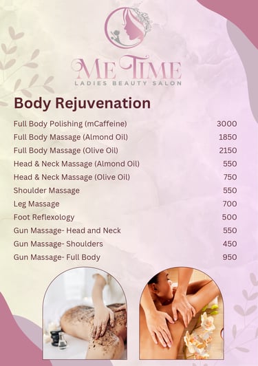 Me Time Ladies Beauty Salon is a premier beauty parlour nestled in the vibrant city of Gurugram. This serene and inviting space is specifically designed to cater to the unique beauty needs of women, offering a wide range of services from haircuts and styling to rejuvenating facials and relaxing spa treatments. With a team of skilled professionals dedicated to enhancing natural beauty, each visit promises to be a refreshing experience.